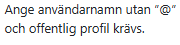 Ange användarnamn utan ”@” och offentlig profil krävs.
